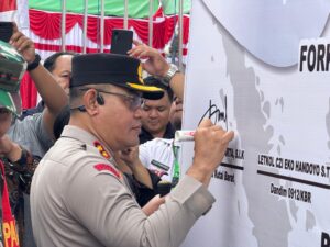 Tribratanewspoldakaltim.com, KUBAR – Kapolres Kutai Barat bersama Dandim 0912 Kubar beserta Forkopimda Kabupaten Kutai Barat hadir i Deklarasi Untuk Pemilu Daerah 2024 bersama 3 calon pasangan yang telah terpilih pencabutan nomor masing-masing Paslon dari 3 Paslon Bupati dan Wakil Bupati di Kantor KPUD Kabupaten Kutai Barat, Senin (23/9/2024)