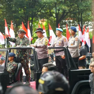 Kapolri Jenderal Listyo Sigit Prabowo mengecek gladi bersih apel gelar pasukan dalam rangka Operasi Mantap Brata 2024 pengamanan tahap pengambilan sumpah Presiden dan Wakil Presiden RI, Prabowo Subianto dan Gibran Rakabuming Raka. Gladibersih gelar pasukan hari ini diikuti 15.000 personel.