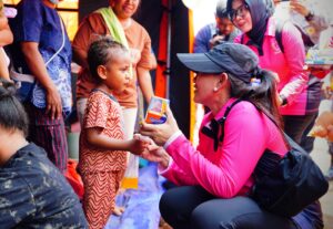 Jakarta — Ketua Umum (Ketum) Bhayangkari, Juliati Sigit Prabowo, meninjau dua posko pengungsian bencana erupsi Gunung Lewotobi Laki-laki di Nusa Tenggara Timur (NTT). Ketum Bhayangkari melihat dapur umum yang didirikan TNI-Polri hingga proses penyulingan air bersih oleh Brimob.