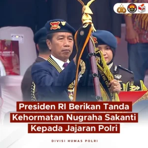 Presiden Republik Indonesia, Ir. H. Joko Widodo, menganugerahi tanda kehormatan Nugraha Sakanti kepada tujuh Satuan Kerja (Satker) Polri dalam upacara yang berlangsung di Mako Korps Brimob Polri, Kelapa Dua, Depok, Jawa Barat, pada Senin (14/10). Penghargaan tersebut diberikan kepada Korps Brimob Polri, Korlantas Polri, Bareskrim Polri, Densus 88 Antiteror Polri, Pusdokkes Polri, Baharkam Polri, dan Divhubinter Polri atas jasa mereka di bidang kepolisian yang bermanfaat bagi bangsa dan negara.