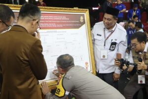 BENGKULU – Kapolda Bengkulu Irjen Pol. Anwar, S.I.K., M.Si. hadiri Rapat Pleno Terbuka dan Pengundian Nomor Urut serta Deklarasi Kampanye Damai dalam Pemilihan Gubernur dan Wakil Gubernur Provinsi Bengkulu Tahun 2024 pada hari Senin malam (23/09/2024) bertempat di kantor KPU provinsi Bengkulu. Adapun rangkaian kegiatan agenda tersebut diawali dengan pengambilan bola nomor antrian untuk pengambilan nomor urut oleh kedua pasangan calon gubernur dan wagub.